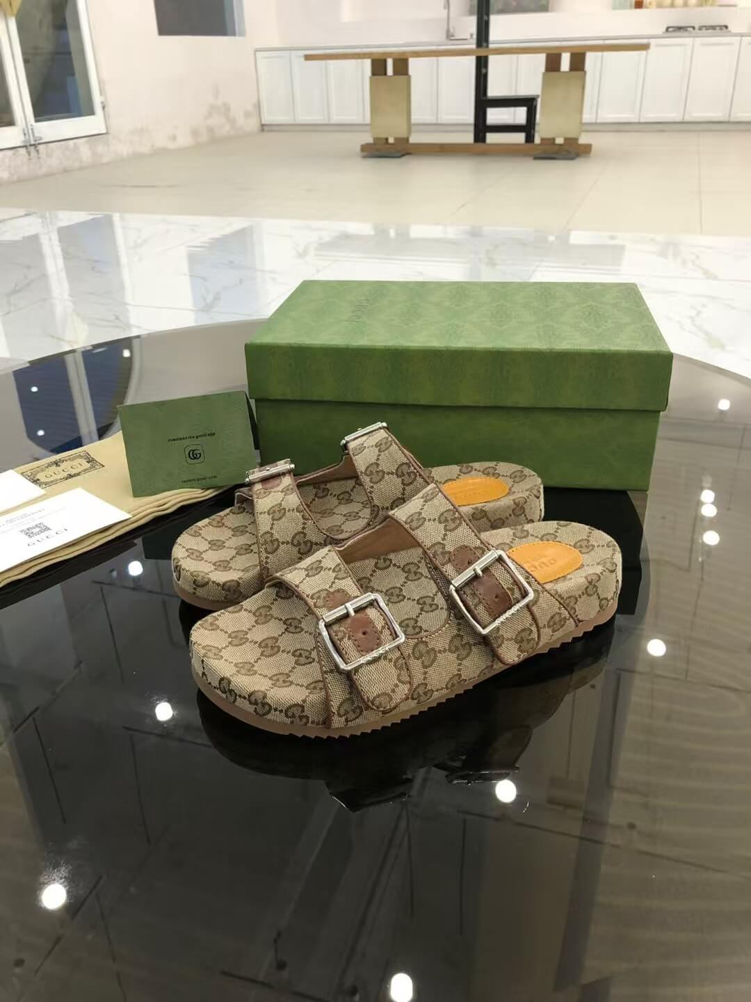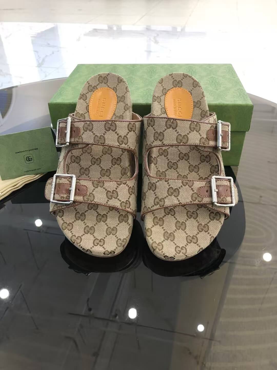 Brown All-Over Print Slippers