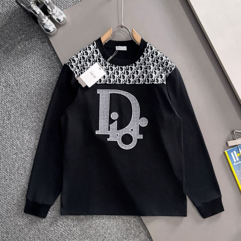 Embroidered Patterned Collar & Emblem Black Sweatshirt