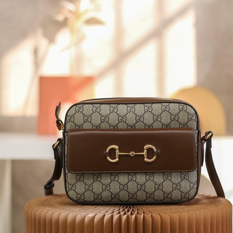 Horsebit Patchwork Full Print Shoulder Bag