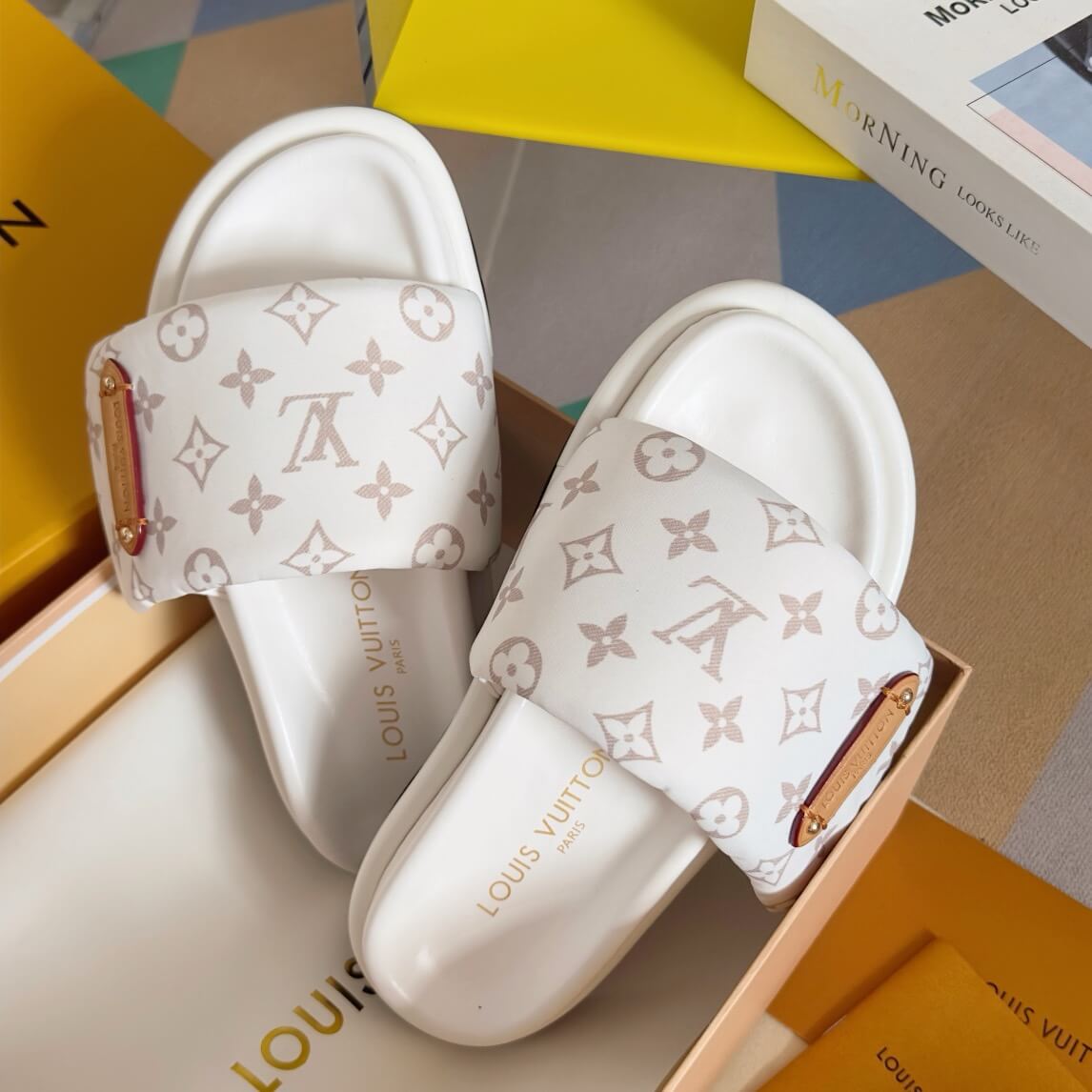 Women's White All-Over Print Slippers